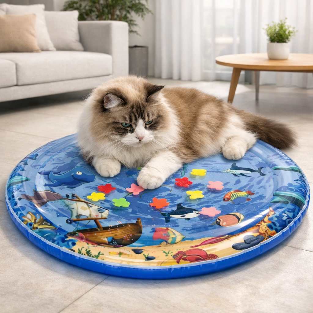A Almofada Refrescante Gatíssimo AquaCool foi criada para oferecer alívio térmico imediato, transformando o calor intenso em um momento de conforto, relaxamento e diversão. Basta adicionar água para inflar: o contato com a superfície refrescante ajuda a regular a temperatura corporal, enquanto os peixes de simulação internos despertam curiosidade, estímulo sensorial e brincadeira leve. Tudo isso sem esforço do tutor.